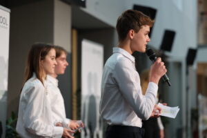 - Sichtbarmachung und Unterstützung von engagierten Lehrkräften: Wir arbeiten jährlich mit etwa 150 Lehrkräften von 70 Schulen eng zusammen. In zahlreichen Workshops und mit umfangreichen Materialien ermöglichen wir ihnen vielfältigen Input, den sie auch über business@school hinaus im Unterricht anwenden können. Dafür braucht es offene Schulleitungen und eine öffentlichkeitswirksame Plattform, um das Engagement der Lehrkräfte zu zeigen.